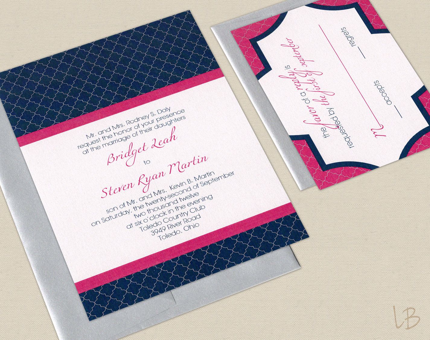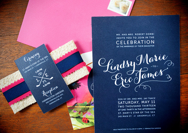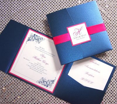 Navy And Hot Pink Wedding Invitations